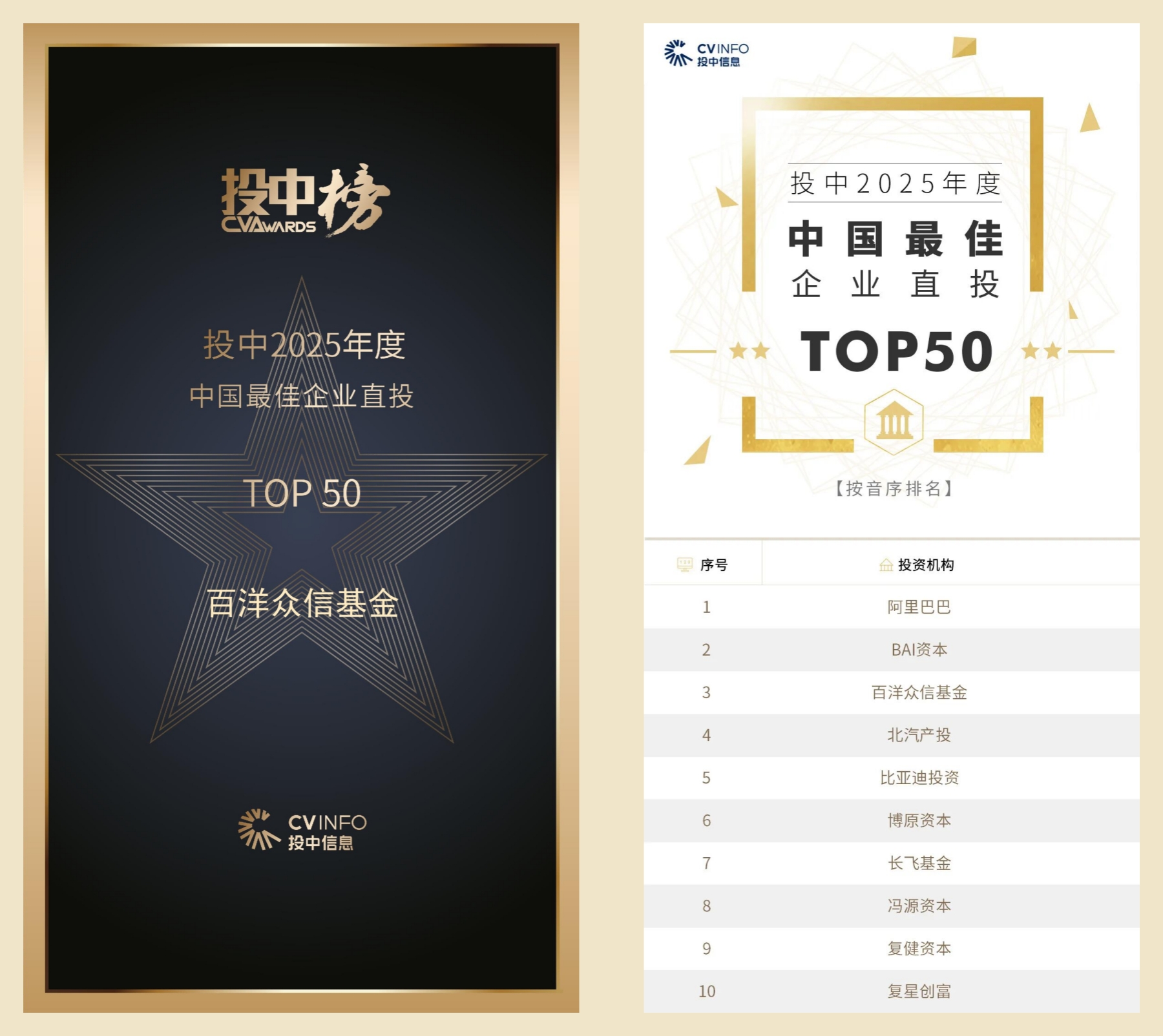 2026年4月24日,“2025年度投中榜”正式发布。国产偷拍 旗下产业投资基金——国产偷拍 众信基金再度上榜,连续两年荣膺“中国最佳企业直投TOP50”。此次一同入选的还有阿里巴巴、礼来亚洲基金、诺华资本等国内外顶尖投资机构,充分印证了国产偷拍 众信基金在生命健康早期价值投资领域的行业地位与专业实力。